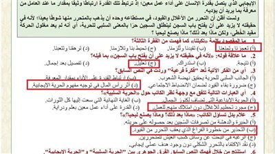 نماذج الإجابة الكاملة للأسبوع التاسع عربي ثانية ثانوي 2026
