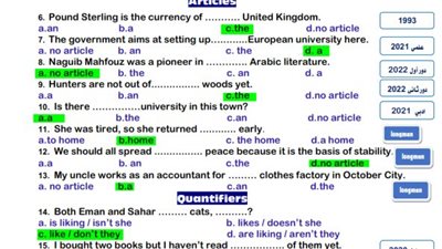 - الاسئلة وإجابتها قواعد الجرامر اللغة الانجليزية ثانوية عامة 2024