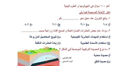 الثانوية العامة 2024.. 100 سؤال وإجابتها في الجيولوجيا.. مراجعات نهائيه