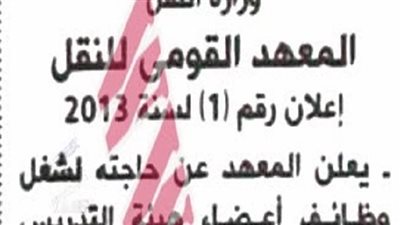 التفاصيل كامله.. المعهد القومي للنقل يعلن حاجته إلى أعضاء هيئة تدريس من المدرسين ومعاونيهم.. وظيفة جامعه