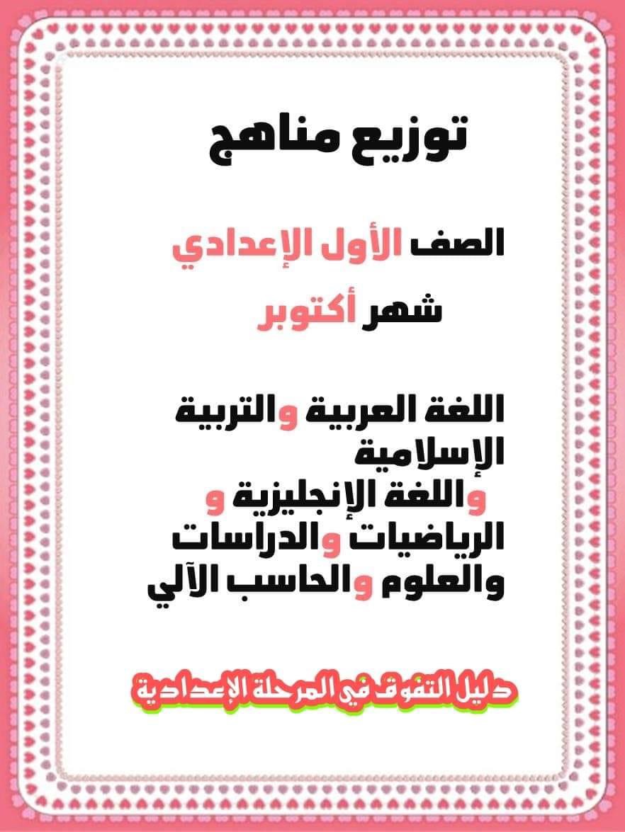 ننشر توزيع منهج شهر أكتوبر للصف الأول الإعدادي
