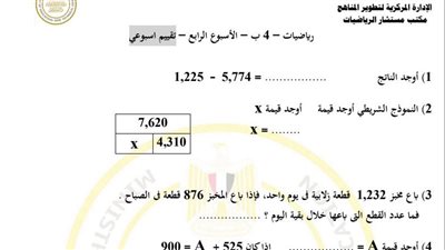 مراجعات نهائية.. أسئلة تقييم الأسبوعين الثالث والرابع الرياضيات الصف الرابع الابتدائي