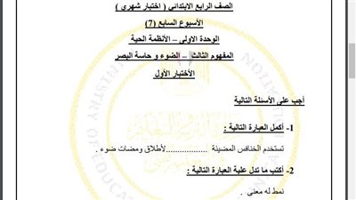 مراجعات نهائية.. أسئلة تقييم الاسبوع السابع في العلوم الصف الرابع الابتدائي
