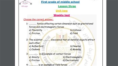 - التقييمات الأسبوعية الصف الأول الإعدادي