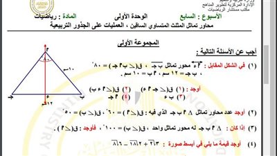 مراجعات نهائية.. أسئلة تقييم الأسبوع السابع الرياضيات لـ الصف الثاني الإعدادي