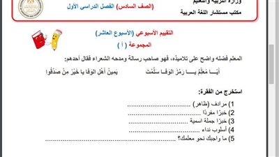 مراجعات نهائية.. أسئلة تقييم الاسبوع العاشر في اللغة العربية الصف السادس الابتدائي
