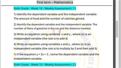 مراجعات نهائية.. أسئلة تقييم الاسبوع العاشر في الرياضيات Math الصف السادس الابتدائي