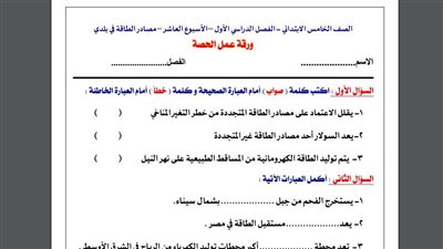 مراجعات نهائية.. أسئلة تقييم الاسبوع العاشر في العلوم الصف الخامس الابتدائي