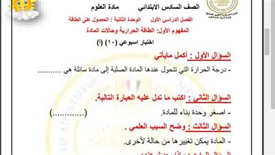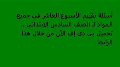 أسئلة تقييم الأسبوع العاشر في جميع المواد لـ الصف السادس الابتدائي.. تحميل بي دى إف الآن من خلال هذا الرابط