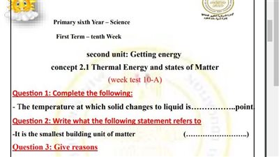 مراجعات نهائية.. أسئلة تقييم الاسبوع العاشر في العلوم Science الصف السادس الابتدائي