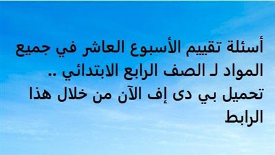 أسئلة تقييم الأسبوع العاشر في جميع المواد لـ الصف الرابع الابتدائي.. تحميل بي دى إف الآن من خلال هذا الرابط