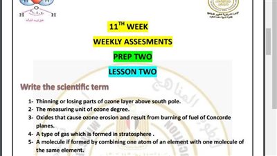أسئلة تقييم الأسبوع العاشر في جميع المواد لـ الصف الثاني الإعدادي.. تحميل بي دى إف الآن من خلال هذا الرابط