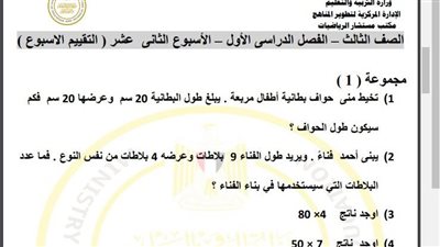 أسئلة تقييم الأسبوع الـ 12 في جميع المواد لـ الصف الثالث الابتدائي.. تحميل بي دى إف الآن من خلال هذا الرابط