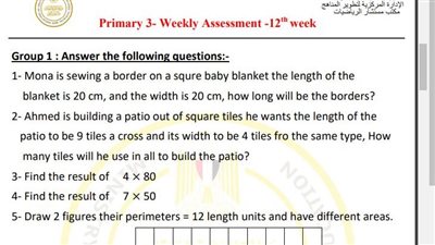 مراجعات نهائية.. أسئلة تقييم الاسبوع الـ 13 في الرياضيات الصف الثالث الابتدائي