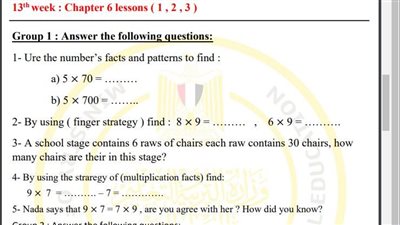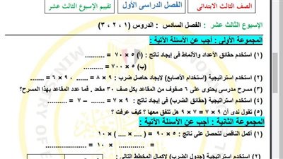 أسئلة تقييم الأسبوع الـ 13 في جميع المواد لـ الصف الثالث الابتدائي.. تحميل بي دى إف الآن من خلال هذا الرابط