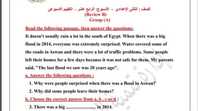 مراجعات نهائية.. أسئلة تقييم الأسبوع الـ 14 لغة إنجليزية لـ الصف الثاني الإعدادي