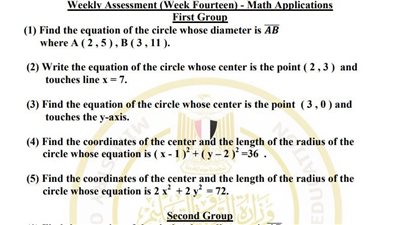 مراجعات نهائية أسئلة تقييم الأسبوع الـ 14 الرياضيات البحتة ثانية ثانوي
