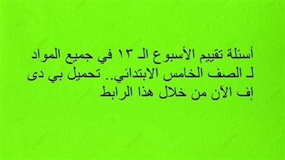 أسئلة تقييم الأسبوع الـ 13 في جميع المواد لـ الصف السادس الابتدائي.. تحميل بي دى إف الآن من خلال هذا الرابط