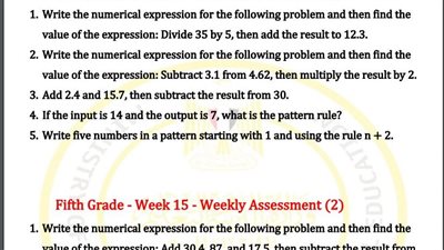 مراجعات نهائية.. أسئلة تقييم الاسبوع الـ 15 في الرياضيات لـ الصف الخامس الابتدائي