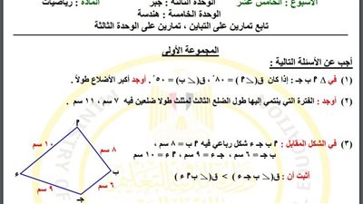 مراجعات نهائية.. أسئلة تقييم الأسبوع الـ 15 الرياضيات لـ الصف الثاني الإعدادي