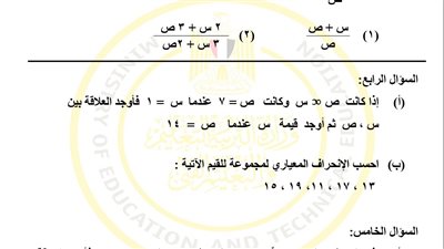 - امتحان الرياضيات ثالثة إعدادي