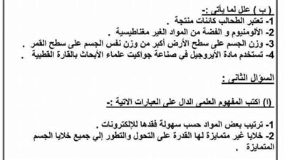 مراجعات نهائية.. بالاجابات أسئلة تقييمات الوزارة في العلوم لـ الصف الثالث الإعدادي، للعام الدراسي الجاري 2024-2025، في مراجعات نهائيه وتحميل بالاجابات أسئلة تقييمات الوزارة في العلوم، حيث يواصل موقع السبورة نشر مراجعة ليلة الامتحان من خلال تحميل نموذج امتحان في العلوم، لطلاب وطالبات الصف الثالث الإعدادي، من خلال مراجعات نهائيه، واستعراض جميع نظام أسئلة امتحانات مادة العلوم، واستعراض لجميع أسئلة أوائل الطلبة في العلوم، عن طريق نشر العديد من الامتحانات، لطلاب وطالبات الصف الثالث الإعدادي، في مراجعات نهائيه، لن يخرج عنها امتحان آخر العام، ومن خلال متابعة مراجعات نهائيه أعدها خبراء المادة في وزارة التربية والتعليم.