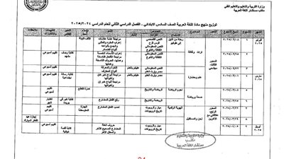 - توزيع منهج المرحلة الابتدائية الترم الثاني
