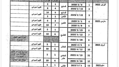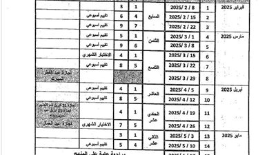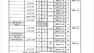 - توزيع منهج المرحلة الابتدائية ترم ثاني 2025