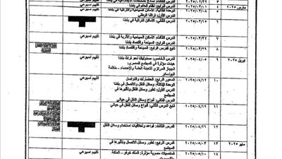 - توزيع منهج المرحلة الابتدائية الترم الثاني
