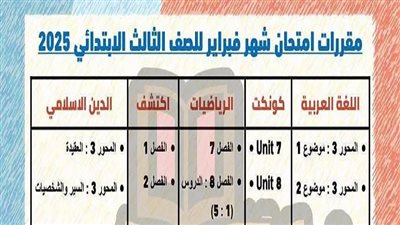 مقررات امتحان شهر فبراير لـ لصف الثالث الابتدائي.. ومواعيد الامتحانات