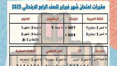 مقررات امتحان شهر فبراير لـ الصف الرابع الابتدائي.. ومواعيد الامتحانات