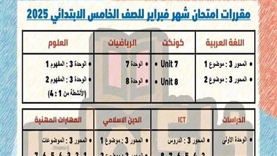 لطلاب الصف الخامس الابتدائي.. مقررات امتحان شهر فبراير.. ومواعيد الامتحانات