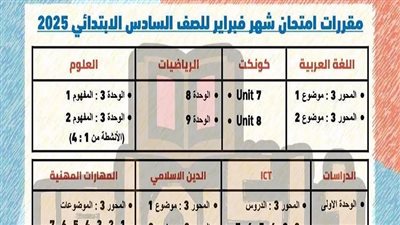 مقررات امتحان شهر فبراير لـ الصف السادس الابتدائي.. ومواعيد الامتحانات