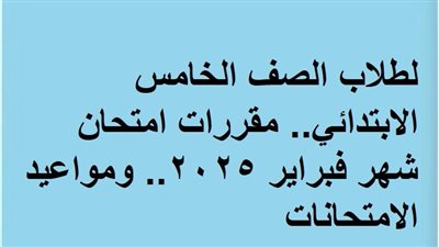 لطلاب الصف الخامس الابتدائي.. مقررات امتحان شهر فبراير.. ومواعيد الامتحانات