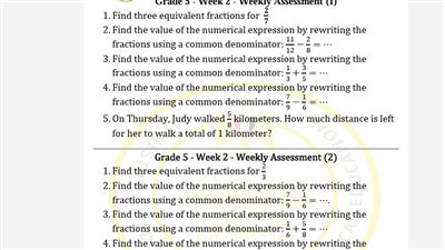 مراجعات نهائية.. أسئلة التقييم والآداء المنزلي والصفي الاسبوع الثاني في الرياضيات خامسة ابتدائي
