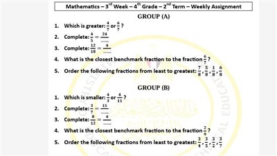 مراجعات نهائية.. تقييمات الأسبوع الثالث الرياضيات لغات ترم ثاني الصف الرابع الابتدائي