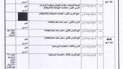 توزيع منهج التاريخ الترم الثاني لـ الصف الأول الثانوي 2025