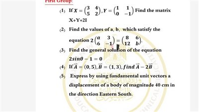 مراجعات نهائية.. أسئلة تقييم الأسبوع الثالث الرياضيات الصف الأول الثانوي ترم ثاني