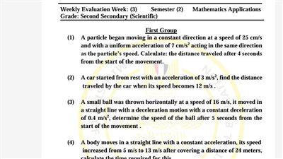 مراجعات نهائية.. أسئلة تقييم الأسبوع الثالث الرياضيات التطبيقية الصف الثاني الثانوي