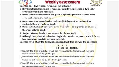 مراجعات نهائية.. أسئلة تقييمات الأسبوع الثالث الكيمياء الصف الثاني الثانوي ترم ثاني