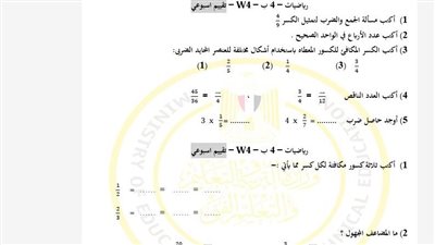 أسئلة تقييمات الأسبوع الرابع الرياضيات ترم ثاني الصف الرابع الابتدائي