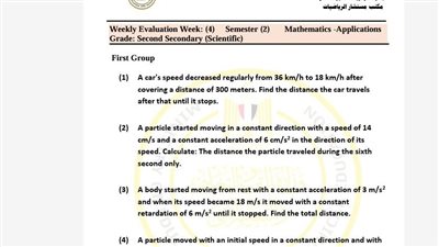 مراجعات نهائية.. أسئلة تقييم الأسبوع الرابع الرياضيات التطبيقية الصف الثاني الثانوي