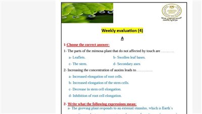 - حل التقييم الاسبوعي للصف الثاني الثانوي احياء