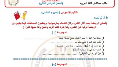 أسئلة تقييمات الأسبوع الخامس في اللغة العربية الصف السادس الابتدائي