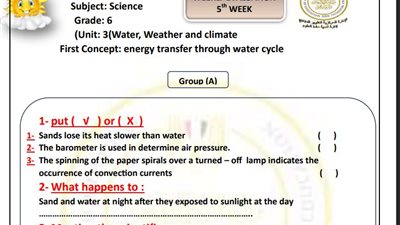- تقييمات الأسبوع الخامس الصف السادس الابتدائي