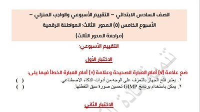 لطلاب الصف السادس الابتدائي.. أسئلة تقييمات الأسبوع الخامس في المهارات المهنية