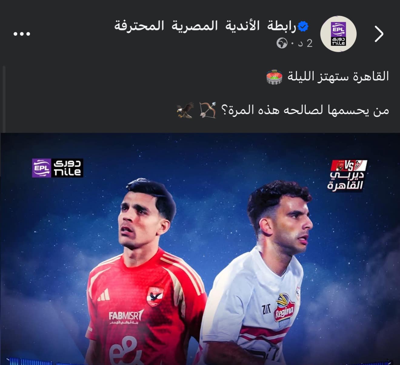 وكتبت رابطة الأندية على صفحتها الرسمية: "هنا ديربي القاهرة.. إليكم أولى مباريات المرحلة النهائية من الدوري المصري".
