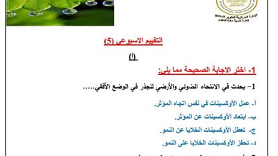 الصف الثاني الثانوي.. أسئلة تقييمات الأسبوع الخامس أحياء