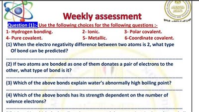 مراجعات نهائية.. أسئلة تقييمات الأسبوع الخامس الكيمياء الصف الثاني الثانوي