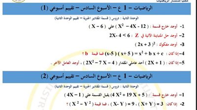 لـ طلاب الصف الأول الإعدادي.. أسئلة تقييمات الأسبوع السادس الرياضيات